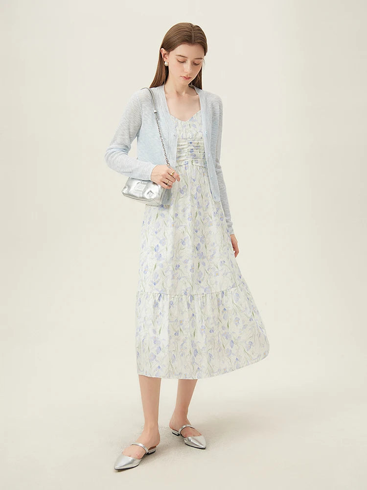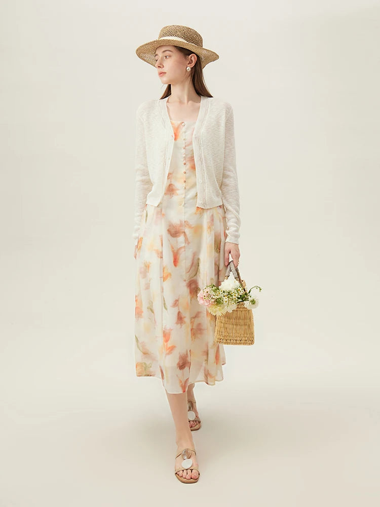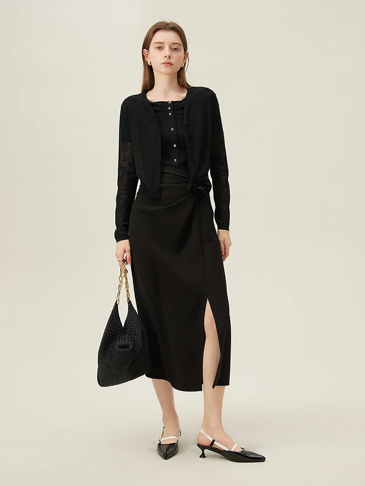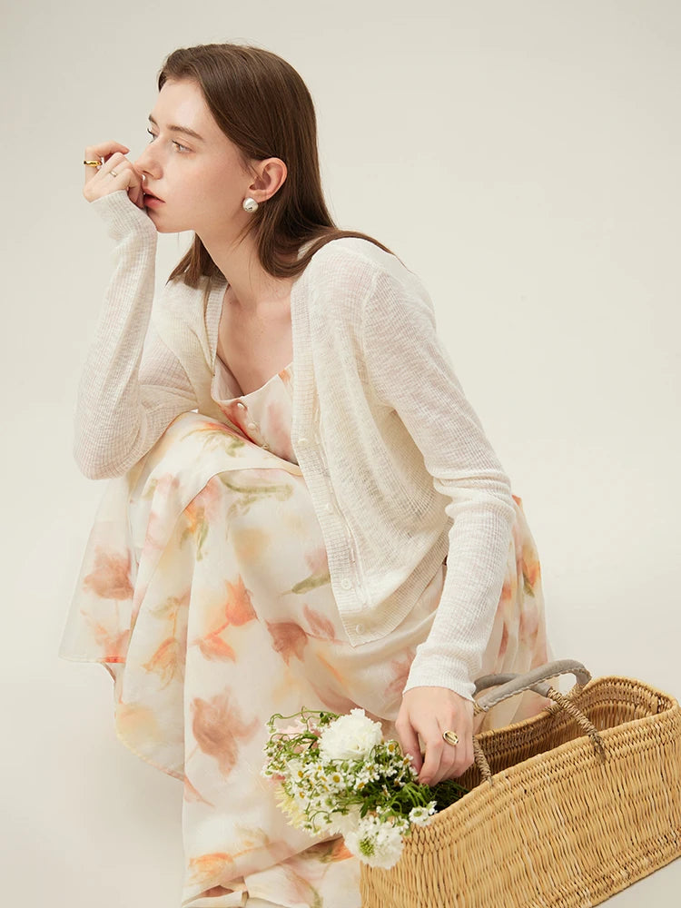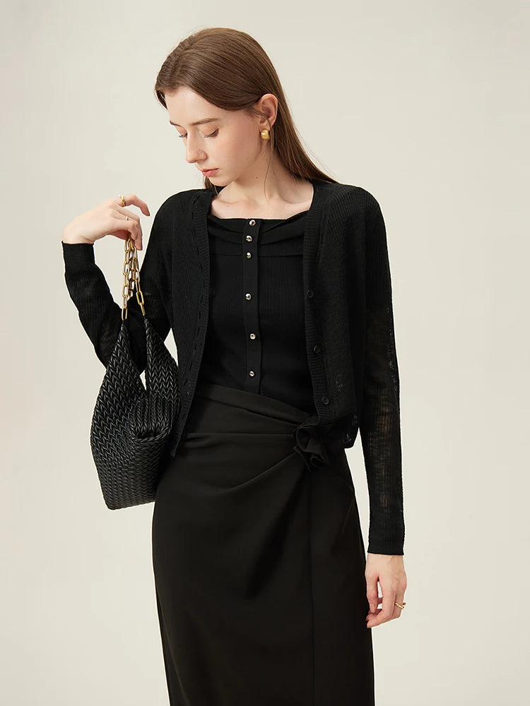 FSLE Ice fog Cardigan In Ice Silk Sun Protection Versatile Knitted Shirt For Women 2024 Summer New Style Slim Fit Top 24FS12117