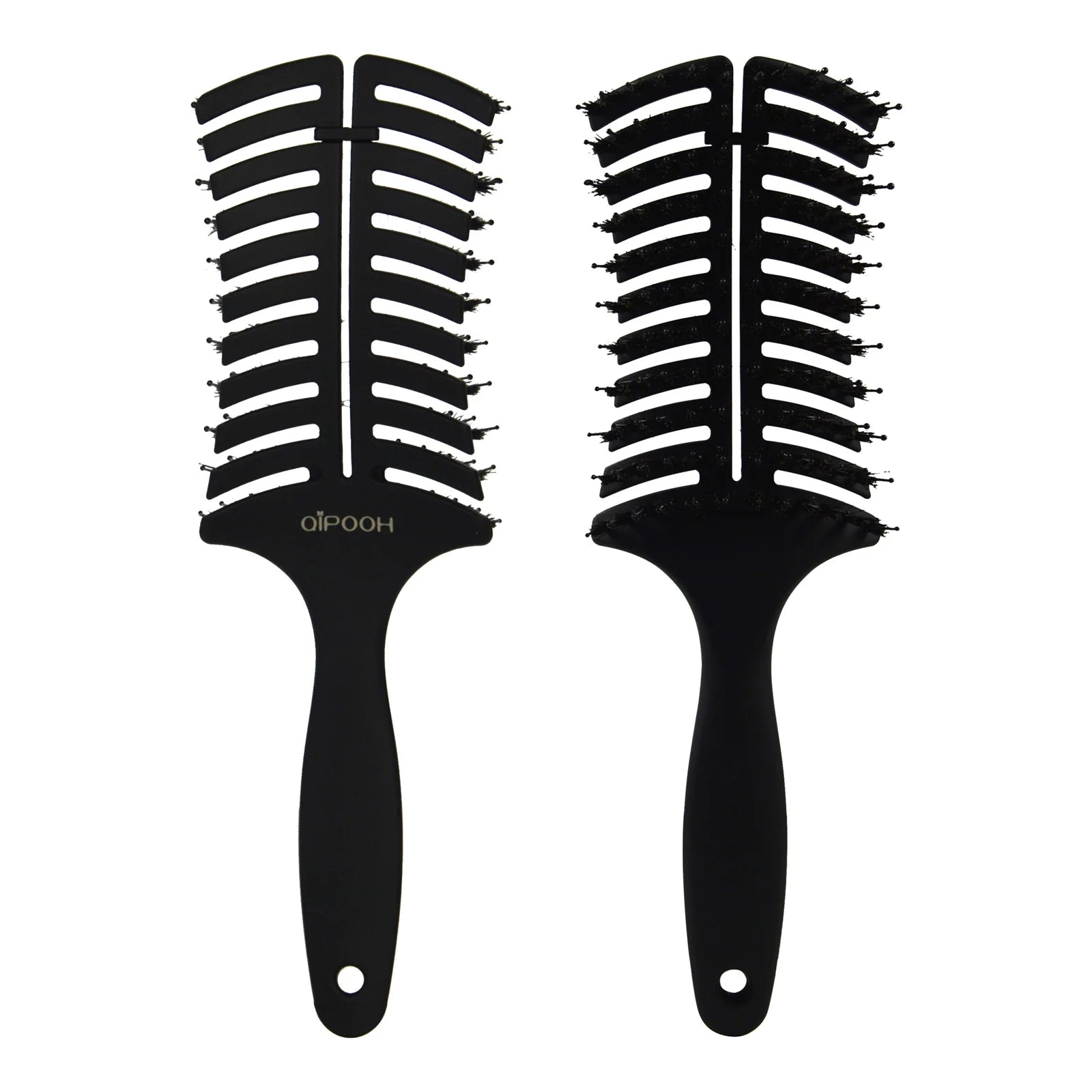 - The bristle hair brush vented design, expedite the heat radiation during blow drying. This reduces the amount of time needed to fully dry your hair and ensures static-free. Curved Shape - This vented hair brush is fitting to your head. Comfortable, non-slip handle, Ceramic technology effective in preventing bacterial growth. Wide tooth count promotes blood circulation to the scalp.