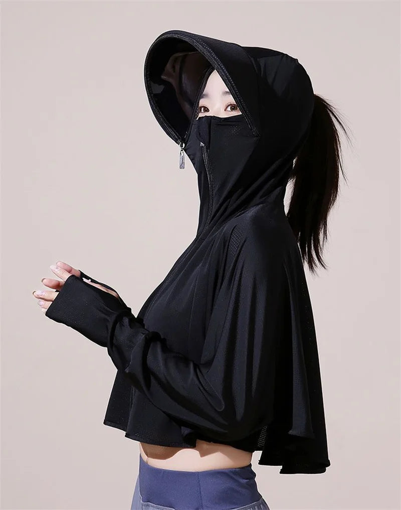 Sun Protection Clothes For Women 2025 New Summer Thin Ice Silk Breathable Bicycle Bike Protection Clothes With Cap UV Protection
